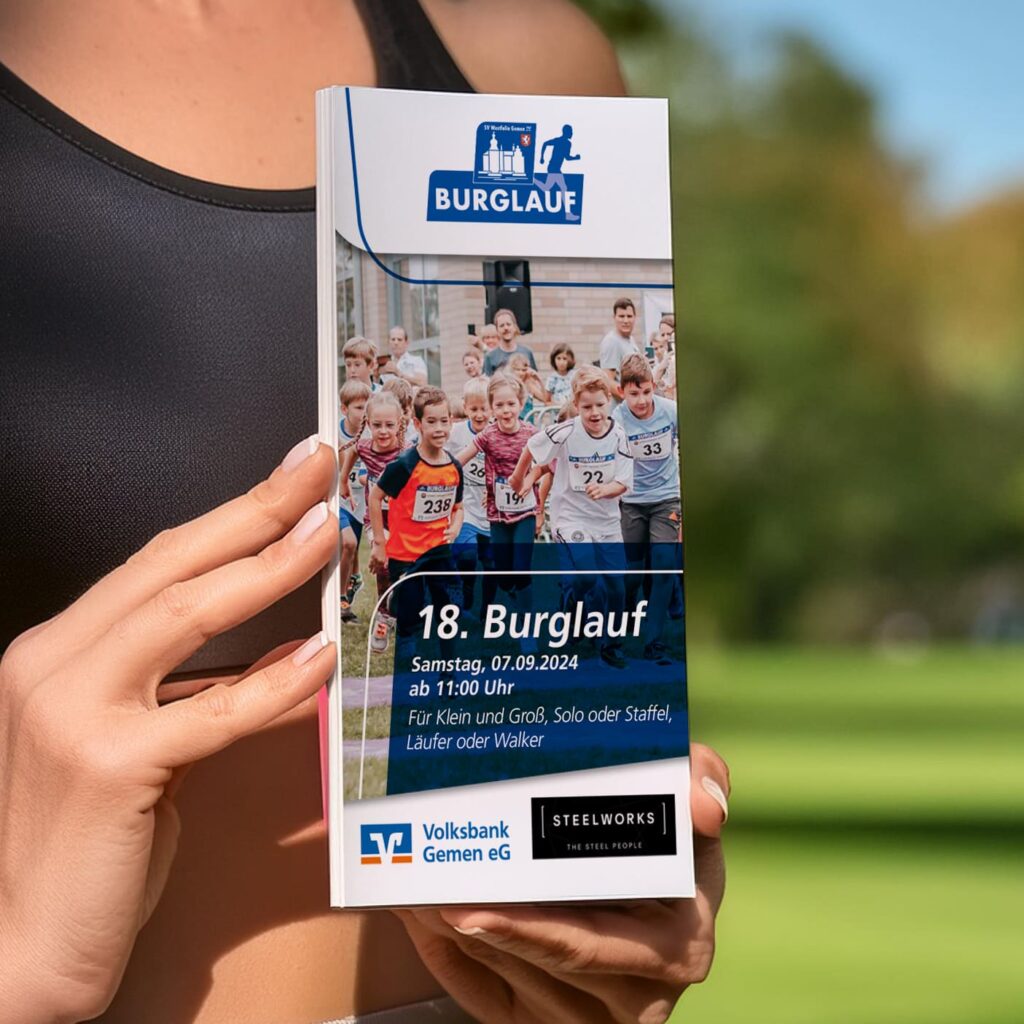 In diesem Projekt habe ich nicht nur eine neue Corporate Identity entwickelt, sondern auch den BURGLAUF-Flyer, die BURGLAUF-Werbetechnik und das Stadionmagazin gestaltet.