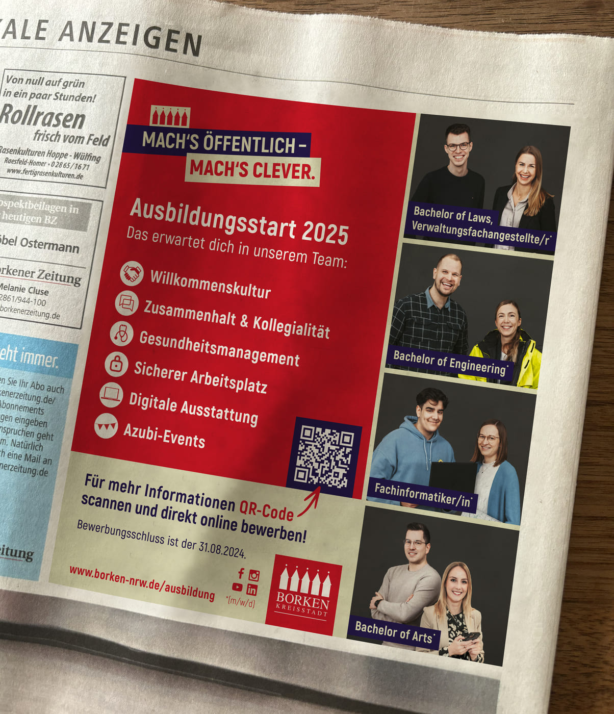 Für die Stadt Borken habe ich Anzeigen, Flyer sowie Werbetechnik entworfen. Bald werden weitere Projekte folgen...